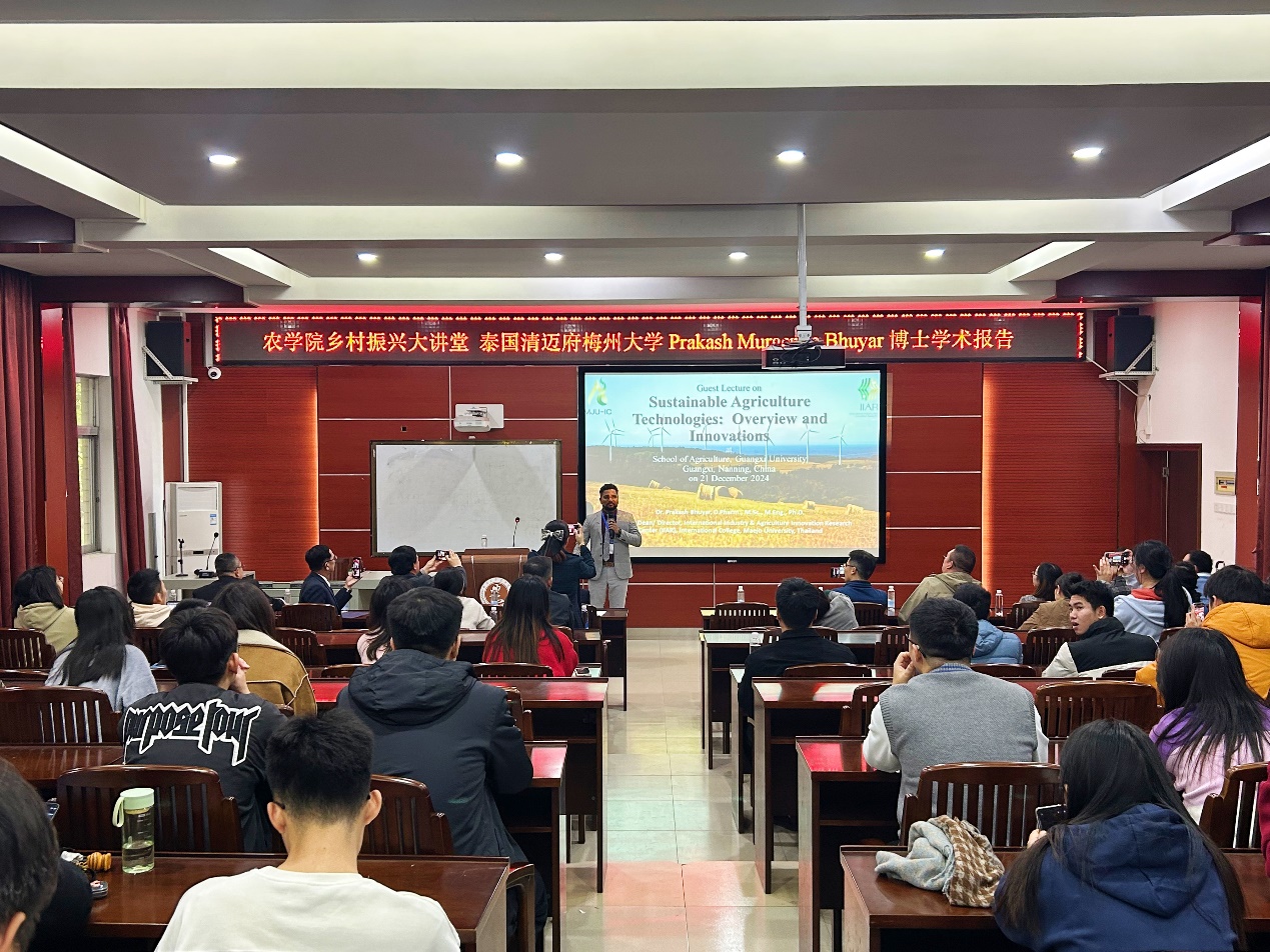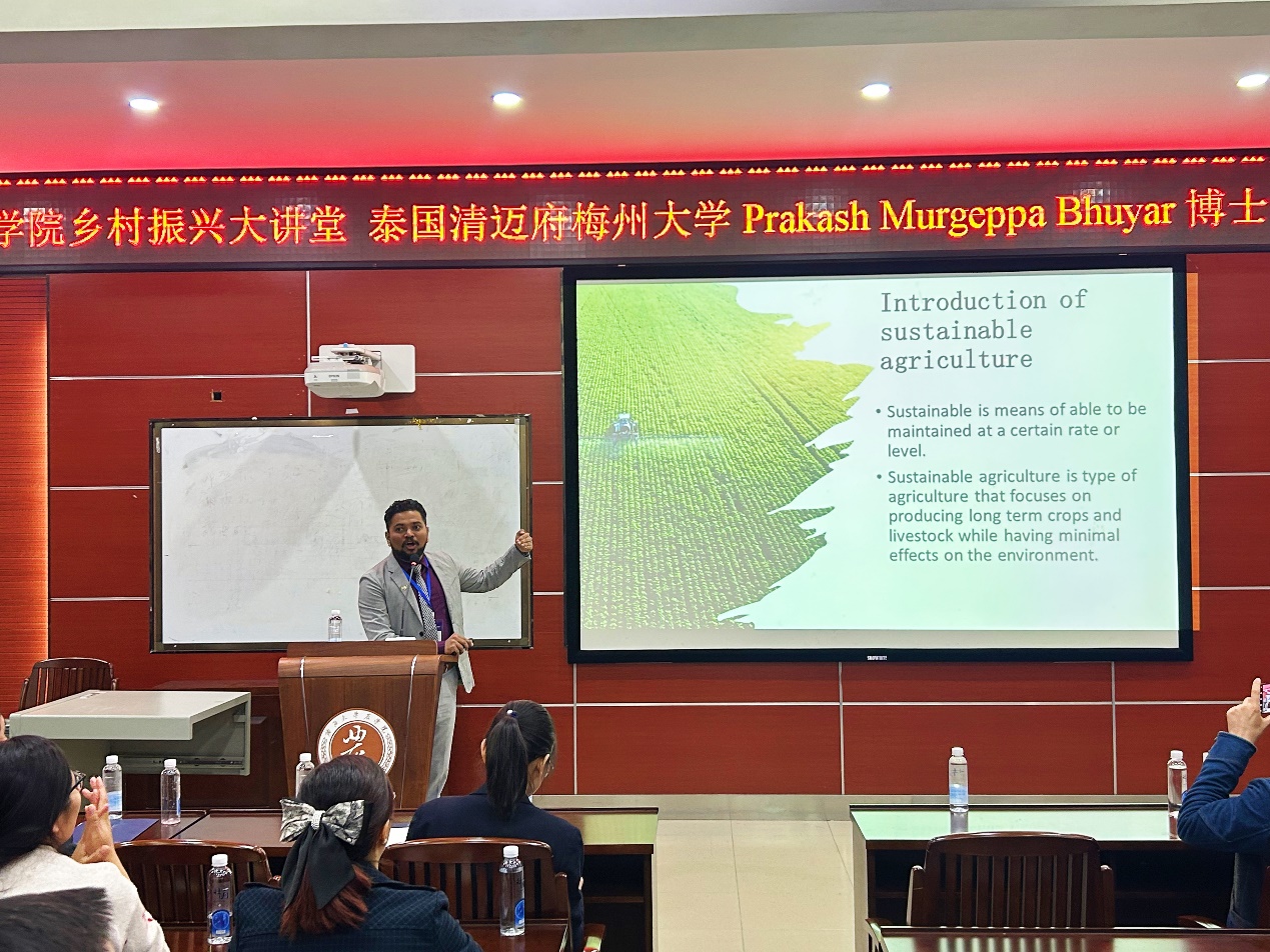 2024年12月21日,泰国梅州大学Prakash Murgeppa Bhuyar博士应邀到我院进行学术交流,为师生们作了一场题为“可持续农业技术:概述与创新”的学术报告,报告会由韦燕燕副院长主持。