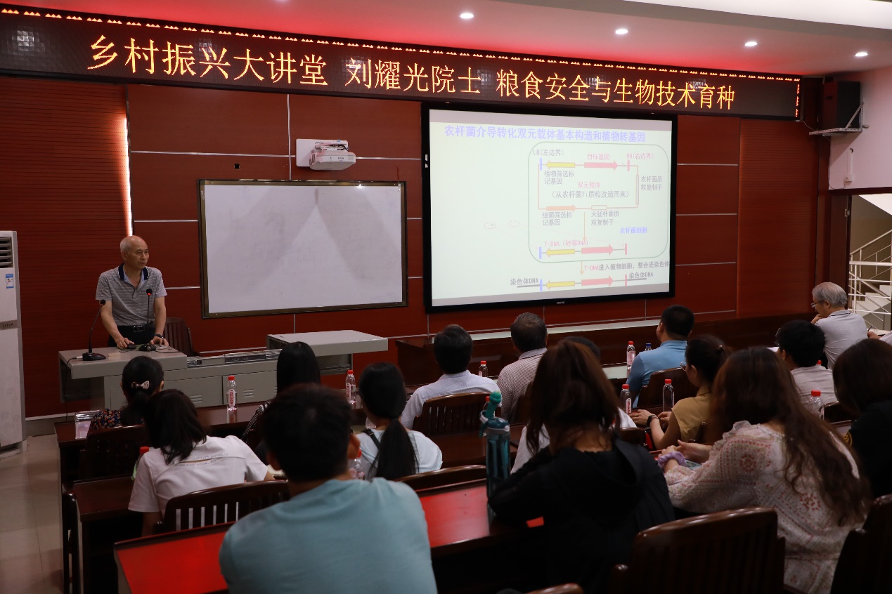 7月14日,应我院和亚热带农业生物资源保护与利用国家重点实验室的邀请,华南农业大学刘耀光院士、湖南农业大学邹应斌教授、沈阳农业大学于海秋教授、东北农业大学陈庆山教授、河南农业大学赵全志教授做客我院 “乡村振兴大讲堂”,为农学院、生命科学与技术学院等100余名师生作了5场有关水稻、花生、大豆分子育种技术和高效生产等内容的学术交流会,报告会由农学院副院长何新华教授主持。