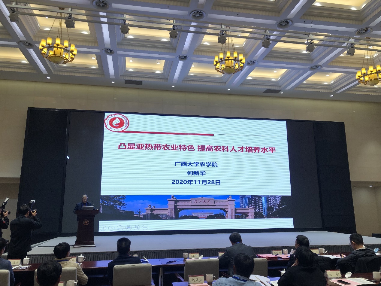 我校农学院副院长何新华教授、植物保护系副主任李雪生副教授出席了联盟成立仪式,何新华副院长作了“凸显亚热带农业特色,培养新农科人才“主题报告,交流分享了广西大学新农科人才培养模式,与会专家对广西大学新农科重视实践教学反应强烈。