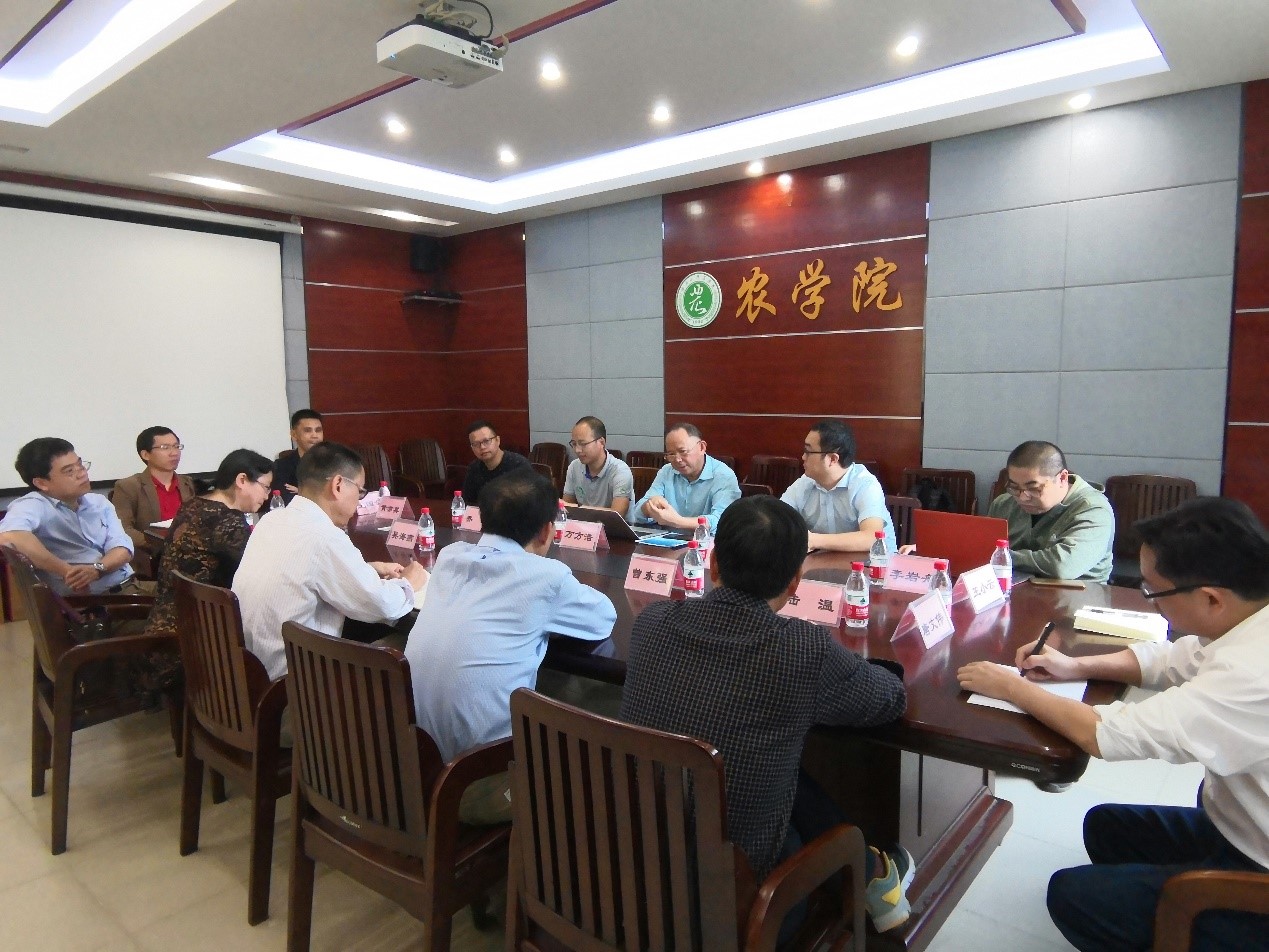 会上,何龙飞院长对万方浩一行的到来表示热烈欢迎,随后向来访专家介绍了学院在师资队伍、人才培养、科学研究、项目申报、科技扶贫等方面的发展情况。他指出,学院立足广西,辐射东盟,服务亚热带作物及经济作物,在水稻、甘蔗、水果、蔬菜等育种、病虫害综合治理等方面取得一定成绩。吴海燕副院长重点介绍了学院在研究生培养方面的发展情况。