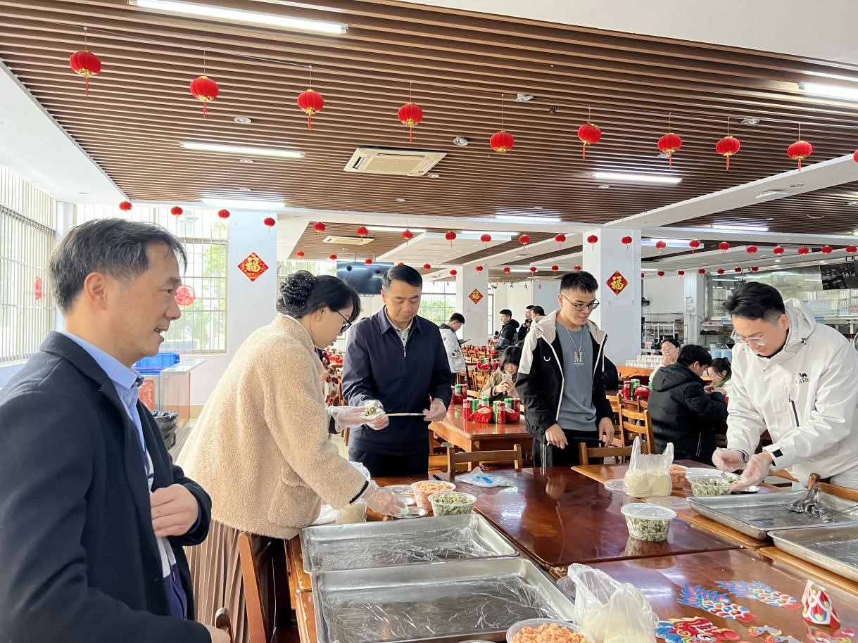 我校党委常委、副校长宁旭初及学校相关部门负责人、各学院辅导员,我院党委副书记甘敏思老师、团委书记李诺老师出席活动,为寒假留校的学生送上温暖问候和新春祝福,让过年留校的同学们深切感受到浓浓的“年味”。