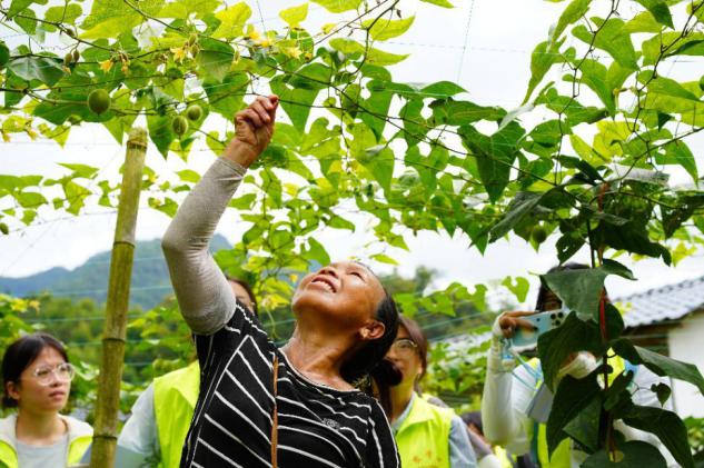 农户正在进行罗汉果人工授粉 刘秀兰 供图