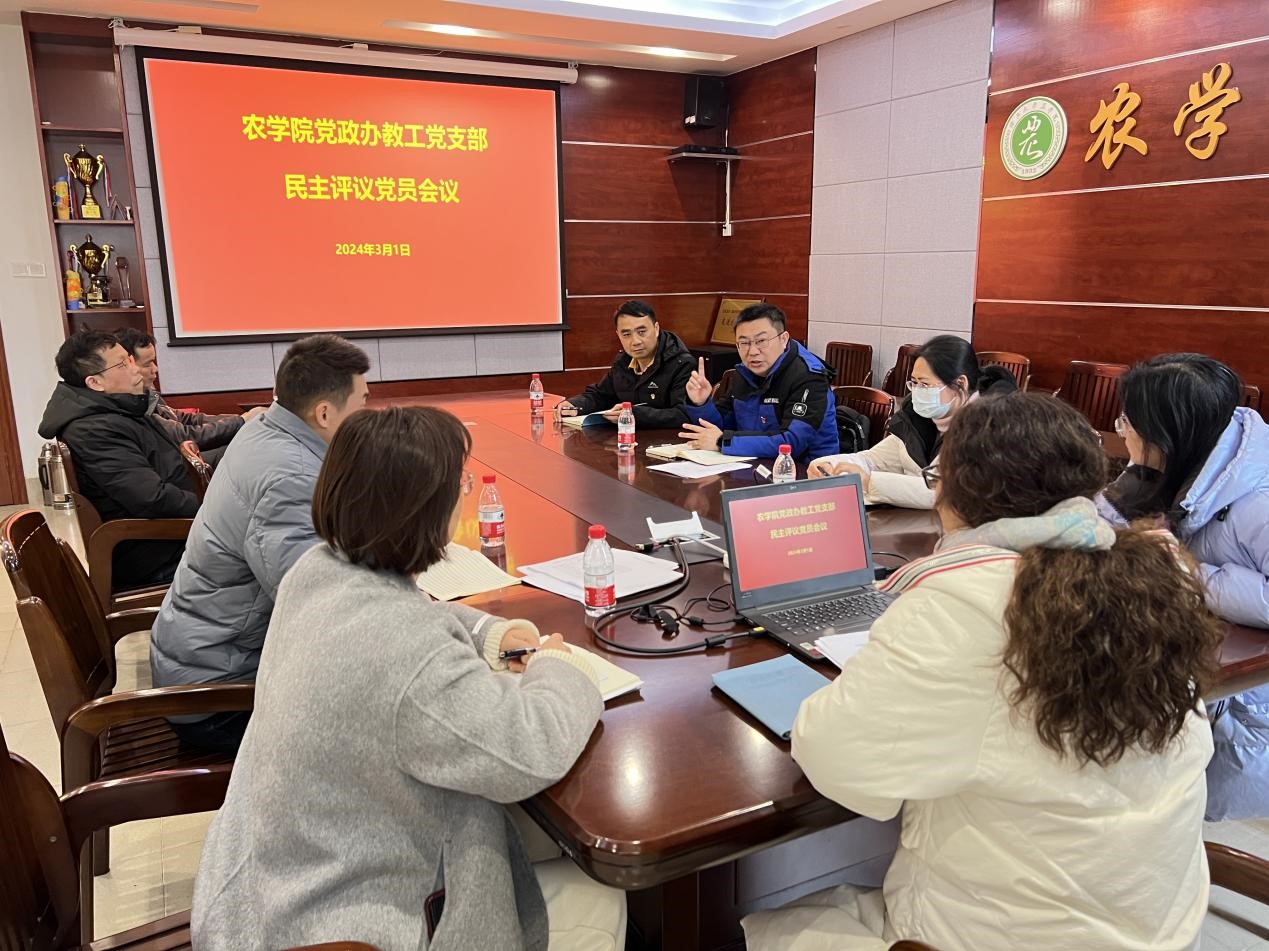 202431日下午,农学院党政办教工党支部在学院149会议室召开民主评议党员大会,党政办教职工党支部全体党员参加。会议由党支部书记李诺同志主持。