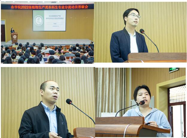 韦燕燕副院长就学院2022级植物生产类专业分流实施细则中的分流依据、分流原则和分流程序作了详细讲解。农学专业副主任肖冬副教授、植物保护专业副主任郑德洪副教授和园艺专业副主任阳燕娟副教授分别根据自身专业的特点,详细介绍了各专业沿革、专业发展、人才培养、课程设置、科研成果、优秀毕业生代表、社会服务和就业趋势等内容。三位老师的讲解、答疑加深了学生对各专业的认知和理解,对后续填报分流专业志愿及专业方向选择起到重要指导作用。