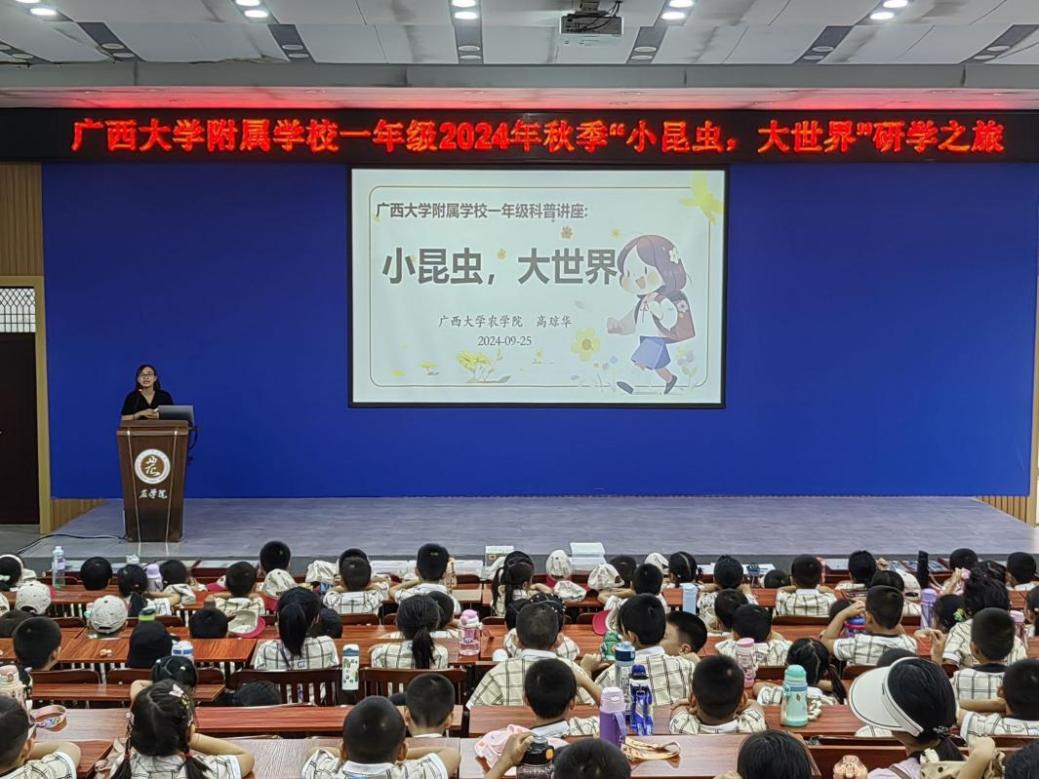 为积极响应2024年全国科普日的号召,9月25日下午,我院开展“小昆虫,大世界”主题科普活动。此次活动吸引了广西大学附属小学一年级全体师生及家长代表,共计160余人的热情参与。