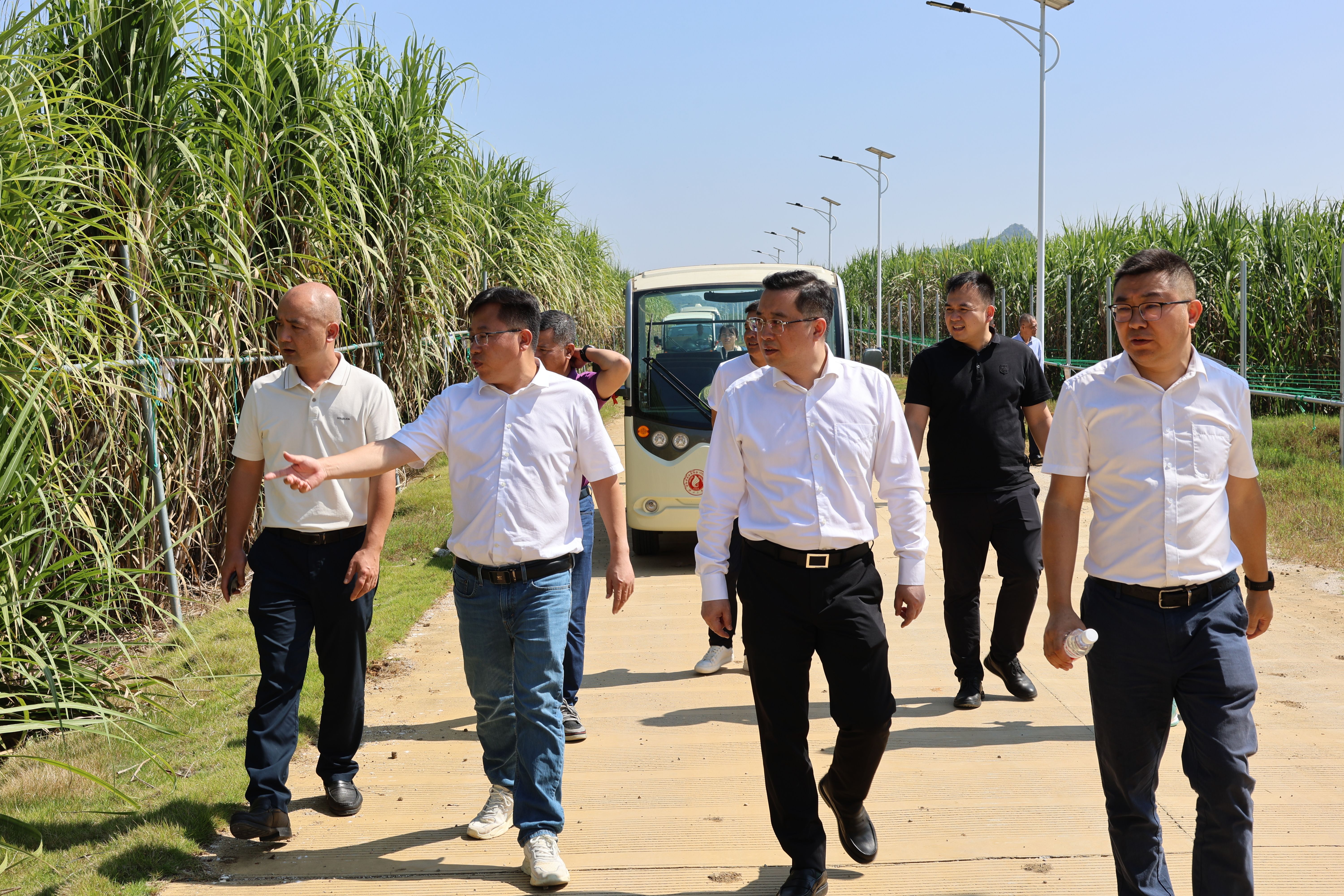 (图二 李柳彬一行在广西大学亚热带农科新城调研)