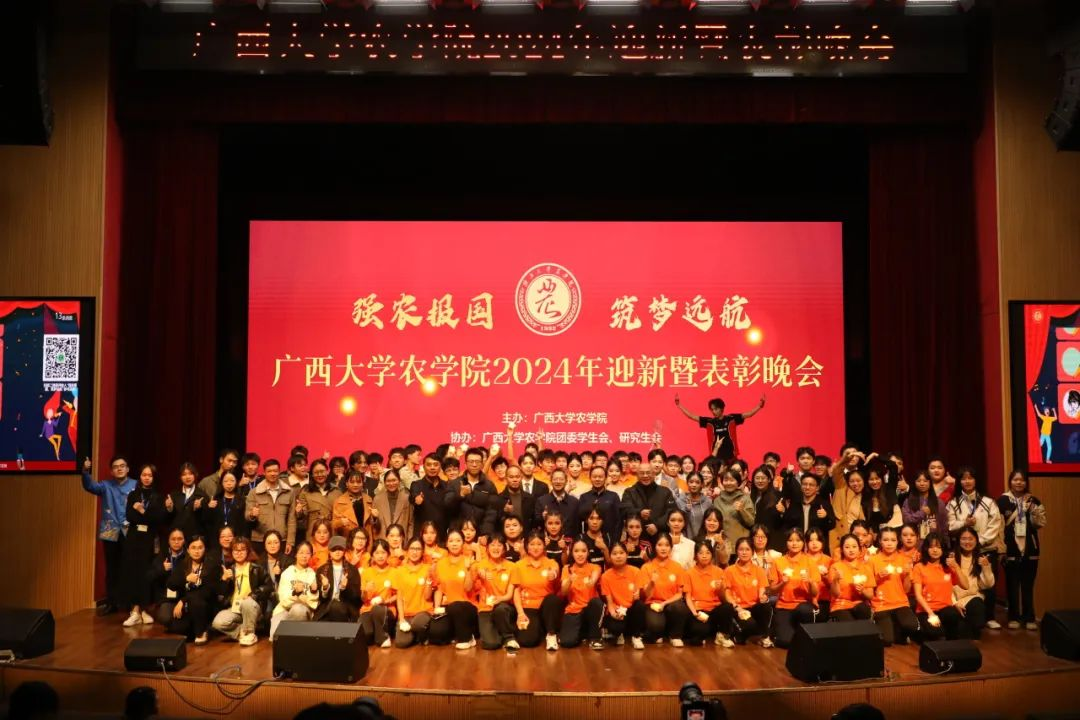强农报国,筑梦远航。12月7日,我院2024年迎新生暨表彰晚会在大学生活动中心隆重举行。248cc永利集团书记袁涛、党委副书记甘敏思、副院长韦燕燕及校友企业代表出席本次晚会。学院各系办(中心)主任、辅导员、班主任、教师代表及300余名学生参加本次晚会。