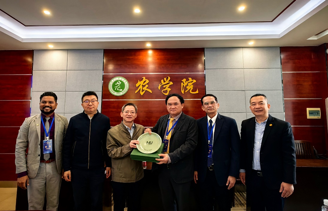 2024年12月21日,泰国清迈府梅州大学农产学院院长Phutthisun Kruekum、副院长Winai Sangkaew、国际学院助理院长Prakash Murgeppa Bhuyar一行访问了我院。学院党委书记袁涛、党委副书记甘敏思、院长张积森、国际合作与交流处副处长郭宇路、农学院副院长姚伟、副院长韦燕燕、副院长邹承武以及各系主任、副主任参加了此次座谈会。