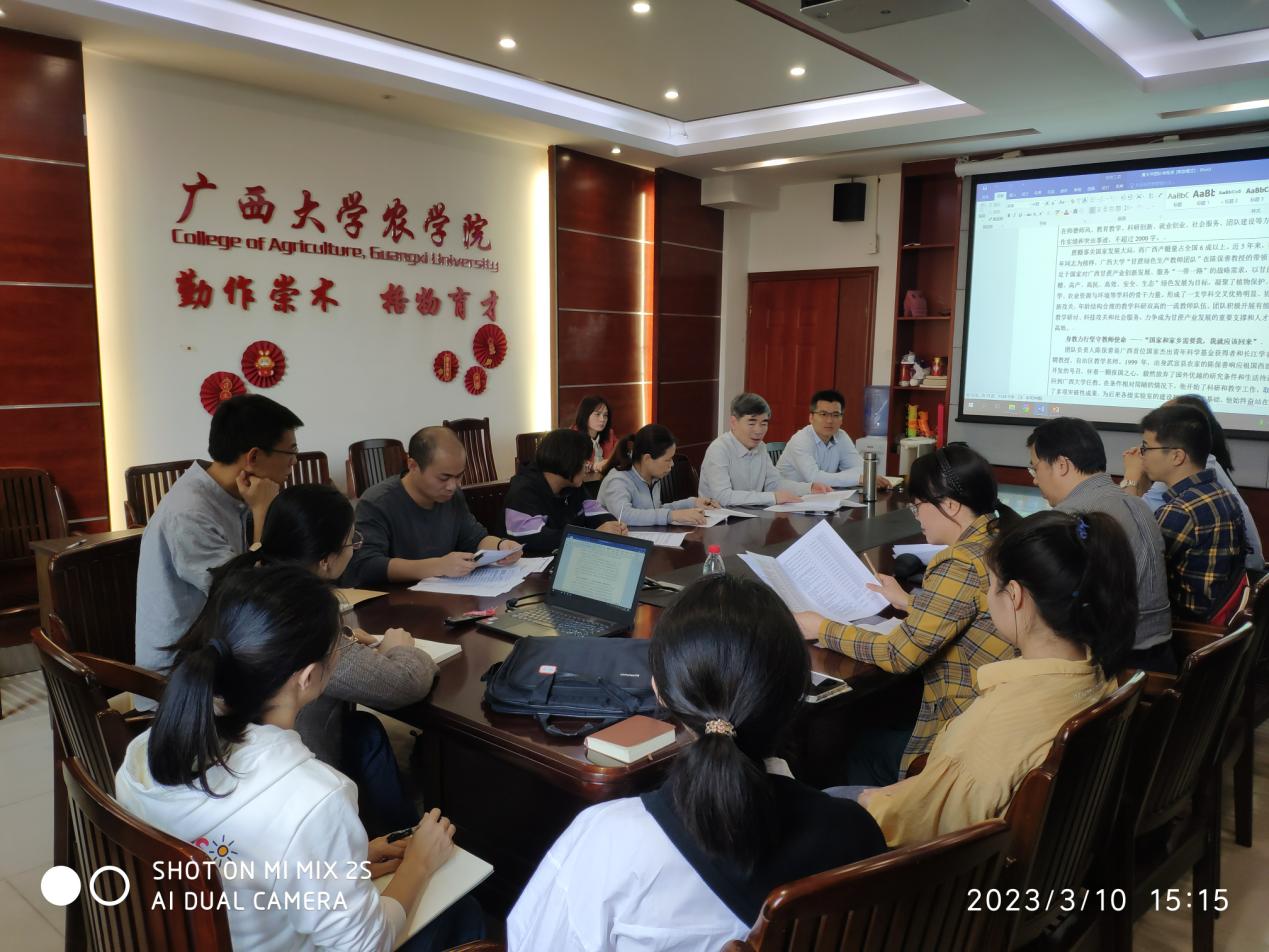 2023310日,学院在149会议室召开“黄大年式甘蔗绿色生产教师团队”建设研讨会。院长李建雄教授、植物保护学科带头人陈保善教授、植物保护系主任谭辉华教授、副主任郑德洪副教授、以及甘蔗绿色生产团队教师参加会议。会议由副院长韦燕燕副教授主持。