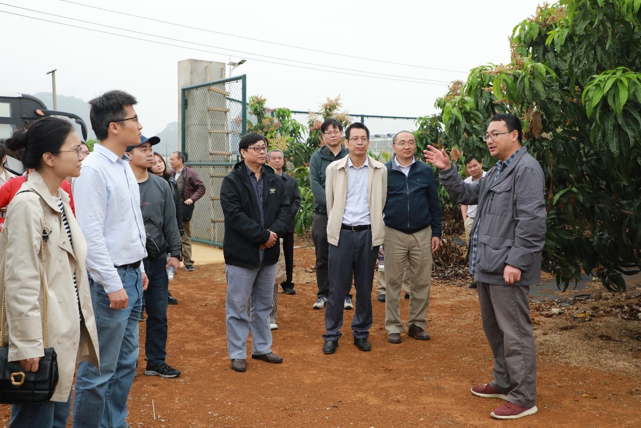罗聪教授向师生们介绍芒果育种实验示范基地建设情况