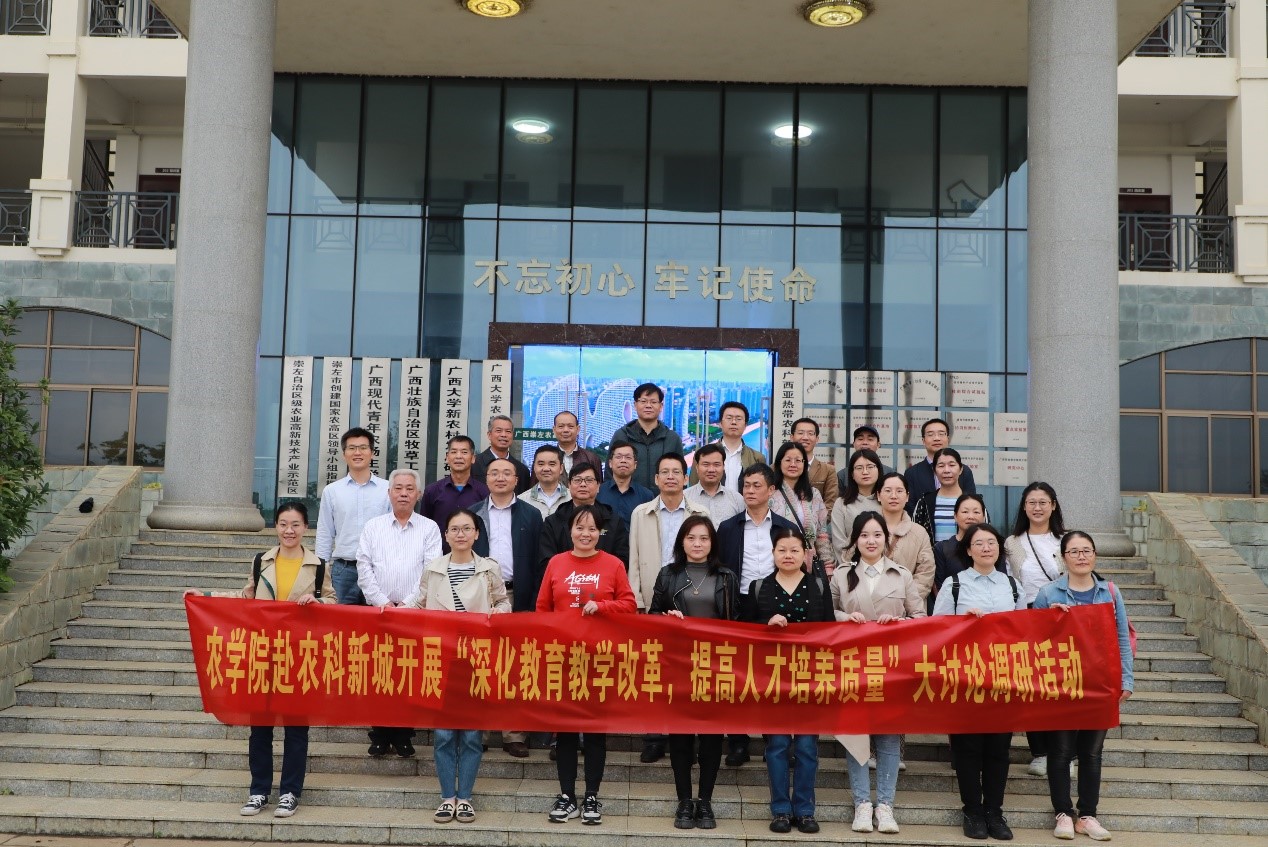 围绕学校“深化教育教学改革,提高人才教学质量”大讨论主题,2023年3月25日,由党委书记张国宏、副院长韦燕燕带队,248cc永利集团、行政组织师生30多人到农科新城开展调研活动,各系领导、各科研项目团队负责人及师生参加。