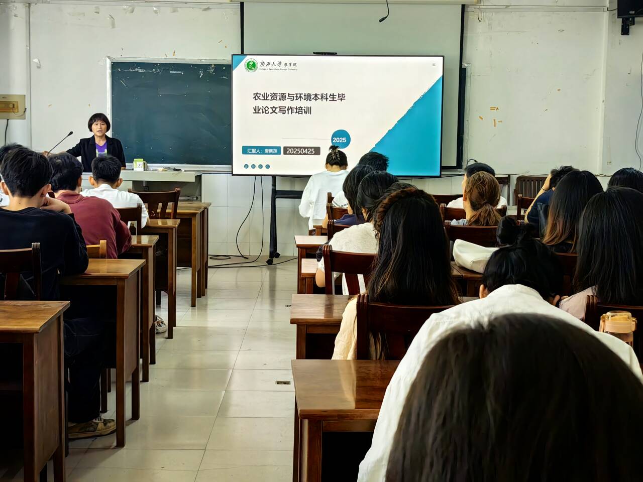 为进一步强化我院本科毕业设计(论文)环节的教学质量,确保2025届本科生能够高质量地完成毕业设计(论文),根据学校、学院工作安排,我院农业资源与环境科学系于2025年4月25日在土化楼212多媒体教室开展了“农业资源与环境科学本科生毕业论文写作培训”。