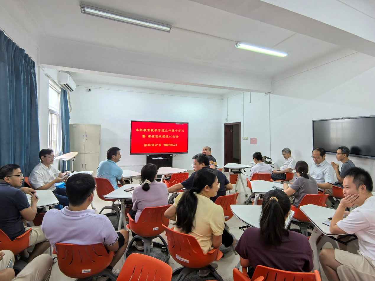 2025624日,我院植物保护系在学院336互动教室召开了本科教育教学管理文件集中学习会暨课程思政建设讨论会。本次会议由植物保护系主任郑德洪副教授主持,植物保护系主任谭辉华教授以及陈保善教授等植物保护系全体教师参加会议