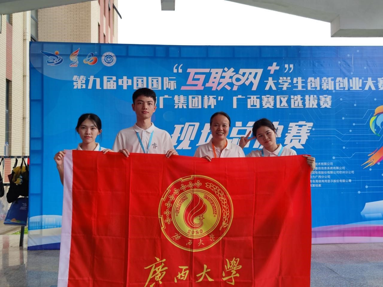 2023年8月,由李素丽老师带队248cc永利集团张德梅、朱水芳、梁中豪同学参加了第九届中国国际“互联网+”大学生创新创业大赛,并获得了广西赛区金奖。